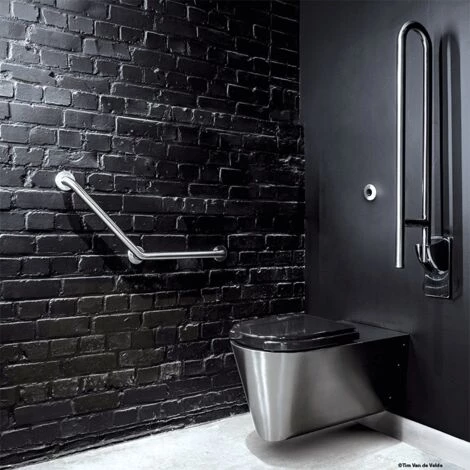 Utilisation comme barre d’appui (partie horizontale) ou de relèvement (partie à 135°) pour WC, douche ou baignoire.