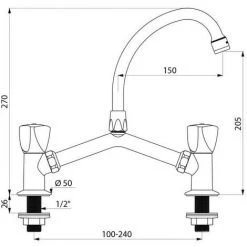 Delabie – Mélangeur De Lavabo 2 Trous M1/2 Entraxe 100-240 Mm En Laiton Chromé