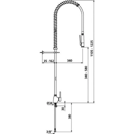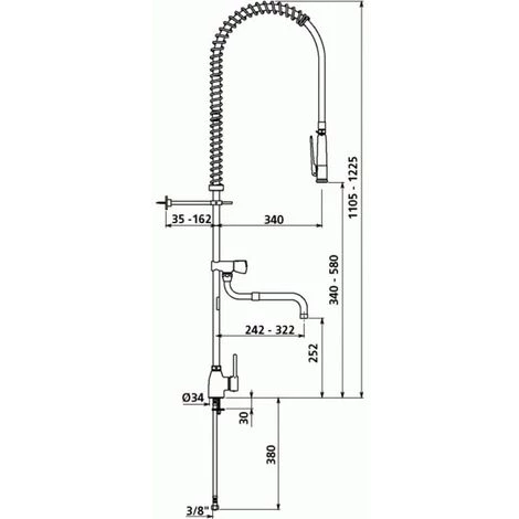 Robinets « Grande cuisine »Mitigeur de prélavage monotrou à douchette Mitigeur monotrou à poser sur plage avec raccords flexibles femelle 12×17 et clapets anti-retour. Combiné de prélavage complet avec colonne 20×27 en laiton. Collier mural réglable. Ress Fabrication Française 10 Ans Garantie