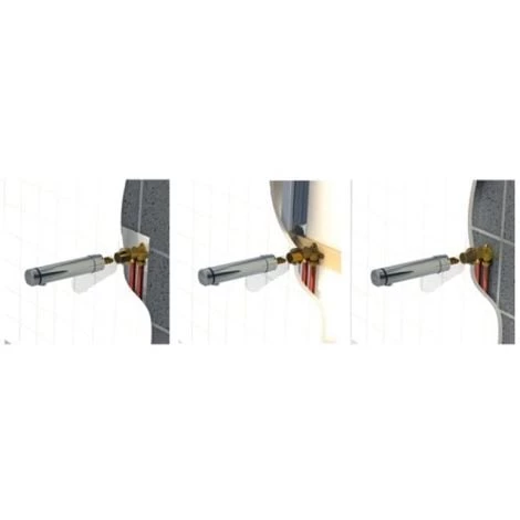 Arrivées d’eau encastrées pour installation en niche béton, rails à plaques de plâtre ou mur plein.