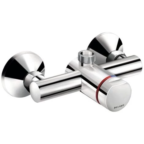 Temporisés et panneaux de douche DelabieMitigeur temporisé de douche Tempomix 3 Mitigeur monocommande 3/4 » à sortie haute pour pose en applique. Déclenchement souple et temporisation préréglée à 30 sec. Réglage de la température sur le croisillon. Butée de tempéra Fabrication Française 10 Ans Garantie