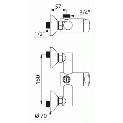 Mitigeur monocommande 3/4 » à sortie haute pour pose en applique.