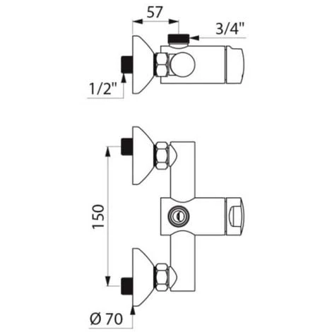 Corps en laiton massif chromé avec raccords équerre M 1/2″.
