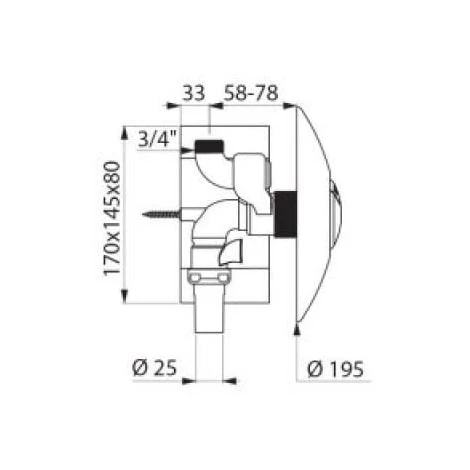 Bouton-poussoir et rosace Ø 195 mm en métal chromé.