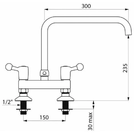 Caractéristiques : Type : Mélangeur – Entraxe mini (mm) : 150 – Entraxe max (mm) : 150 – Nombre de pièce : 1