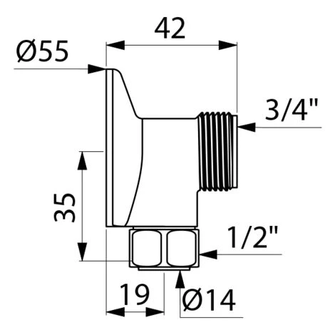 - Raccord applique en laiton chromé.