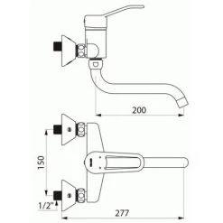 DELABIE Mitigeur Dévier Mural à Bec Orientable Longueur 200 Mm 2519